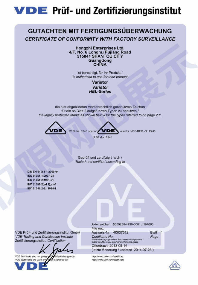 廣東鴻志電子科技有限公司成立于1993年,位于美麗的海濱城市汕頭,現(xiàn)已發(fā)展成為元器件制造集團(tuán)企業(yè),生產(chǎn)壓敏電阻、NTC熱敏電阻、陶瓷電容和金屬化薄膜電容,通過(guò)了ISO9001質(zhì)量體系認(rèn)證和ISO14001環(huán)境體系認(rèn)證,以及IATF16949汽車產(chǎn)品質(zhì)量體系認(rèn)證...